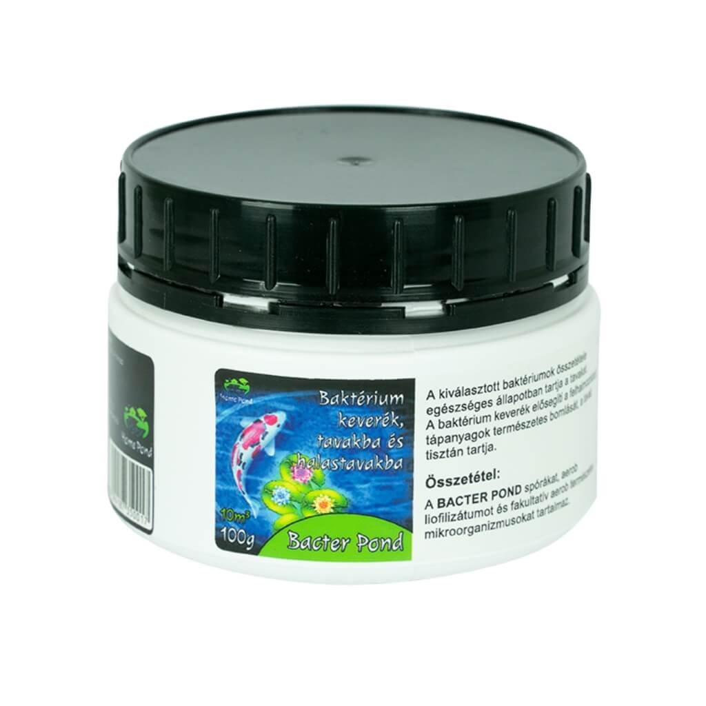Bacter Pond szezonális tavi baktériumok. Stabilizálják a tó törékeny biológiai egyensúlyát, amely a késő tavasz és a nyár folyamán könnyen megzavarodhat. A baktériumok elszaporodnak a vízben, biofilmet képezve, amely lebontja a tápanyagokat. Ezáltal megtisztítja a vizet a szennyeződésektől, és újra visszaállítja a tó biológiai egyensúlyát.
