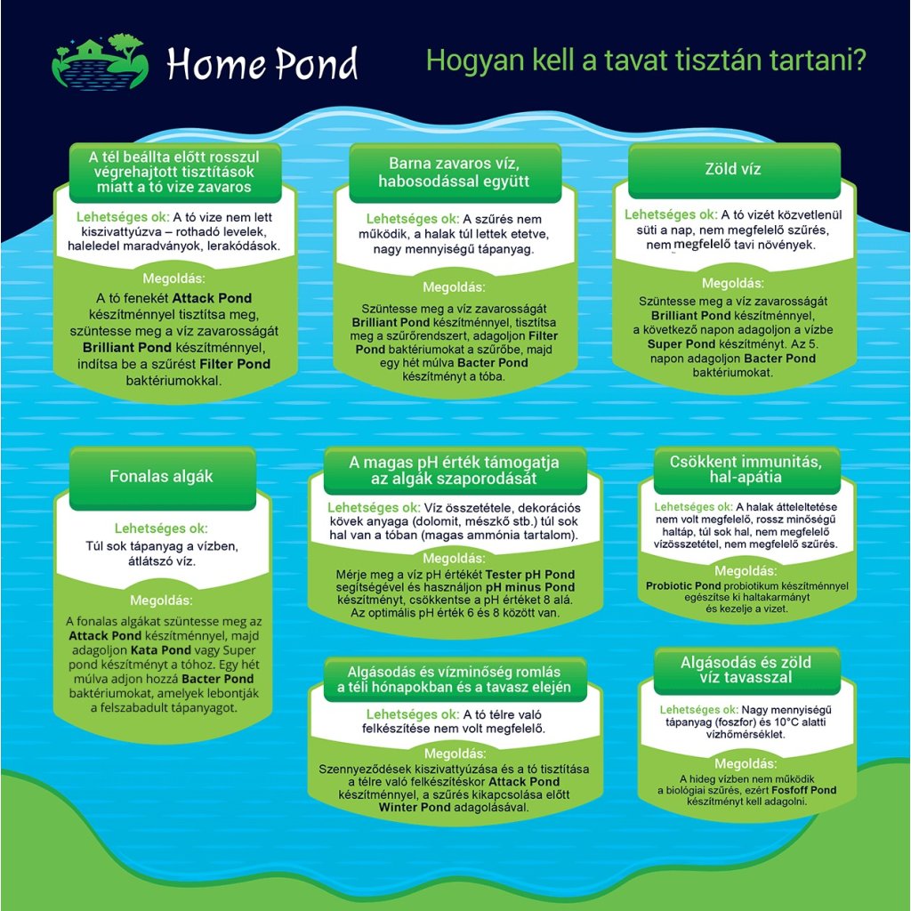 TIPP: Javasolt a halak kezelése vagy az algák eltávolítása után alkalmazni, különösen a Kata Pond és Super Pond termékeink használata után. |