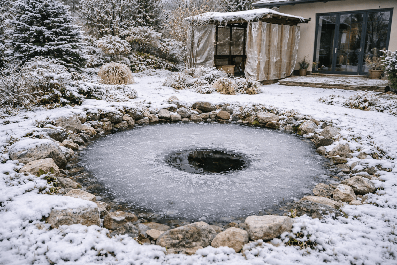 A kerti tó téli gondozásának alapja, hogy legalább egy kisebb nyílást tartsunk fenn a jégen, amelyen keresztül megvalósulhat a gázcsere. Nem a nyári vízáramlásról vagy szellőztetésről van szó – télen elegendő egy körülbelül 20–30 cm átmérőjű, jégmentes felület, amely lehetővé teszi, hogy a tó „lélegezzen”.